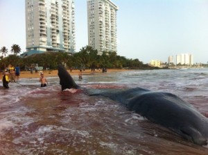 Dramáticos momentos se han vivido esta mañana en Luquillo luego de que una ballena herida llegó a la orilla de la playa cerca del condominio Sandy Hills.