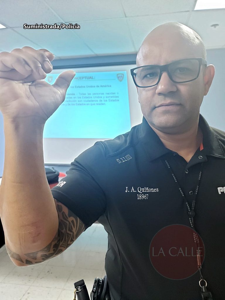 El agente Quiñones resultó con laceraciones en el antebrazo izquierdo, pero dijo que iría posteriormente a atenderse con su médico de cabecera, al momento ambos se encuentran en buen estado de salud.