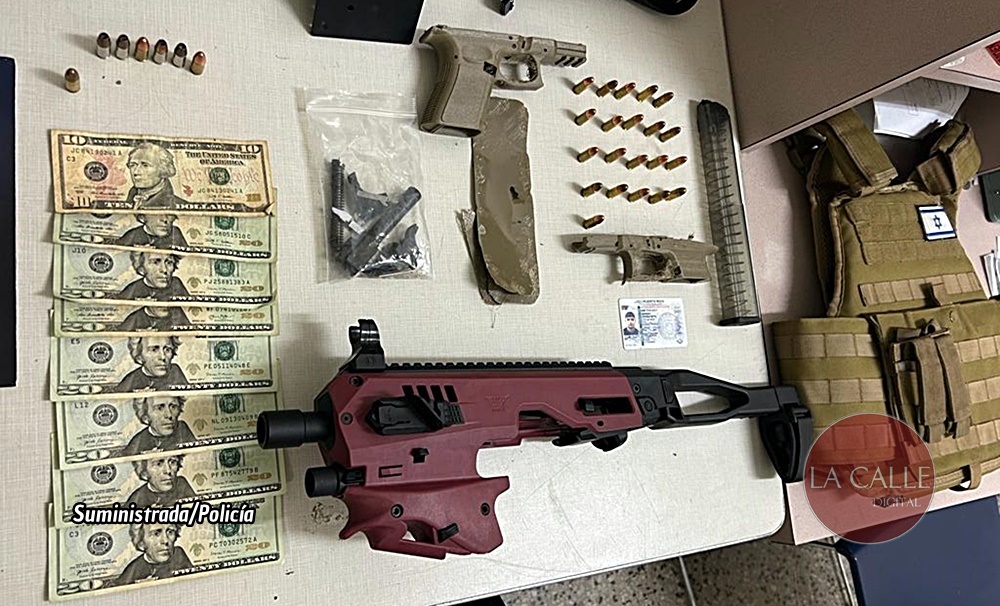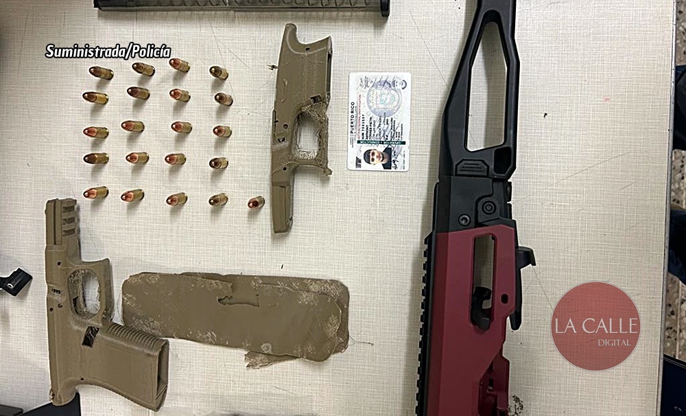 Aparte de eso, en una residencia del sector, y como resultado de un registro consentido, los agentes ocuparon un adaptador plástico para pistolas negro y vino, un cargador, 21 balas calibre 9 milímetros, piezas para pistolas, como cañón y gatillos, entre otros; la impresora 3D usada para fabricar armas; piezas para pistolas ya listas, un chaleco antibalas y $150 en efectivo.