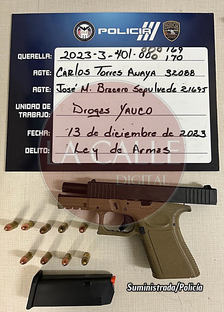 MAYAGÜEZ: Agentes del cuartel de la Sultana del Oeste arrestaron a dos sujetos que estaban armados, en medio de una intervención de tránsito que tuvo lugar a las 8:30 de la noche en la calle San José de la urbanización Alemañy de Mayagüez.