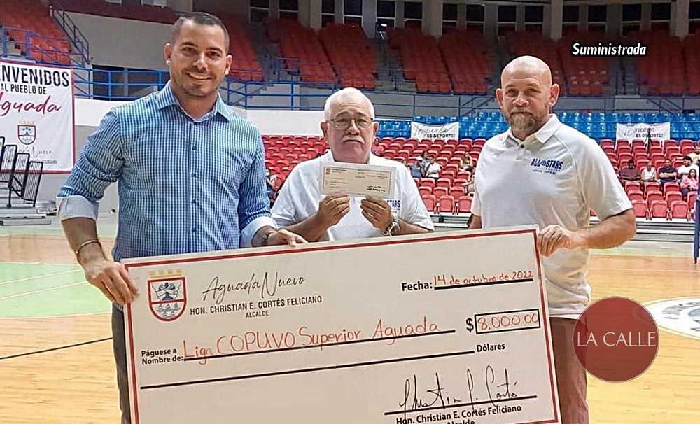 En la ceremonia, celebrada en el Coliseo Ismael “Chavalillo” Delgado de Aguada, el alcalde Cortés entregó la aportación a Juan B. Rivera, apoderado del equipo, y a Waddie Rivera, miembro del staff.
