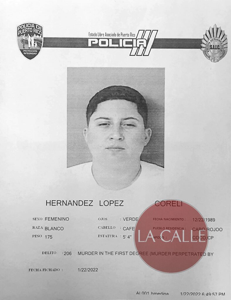 HORMIGUEROS: Agentes de la División de Homicidios de Mayagüez arrestaron a Corelys Hernández López, de 32 años, una comerciante vecina del barrio Joyuda de Cabo Rojo. A la mujer se le imputan cuatro cargos por tentativa de asesinato y una denuncia por disparar o apuntar armas de fuego, configurada en la Ley de Armas.