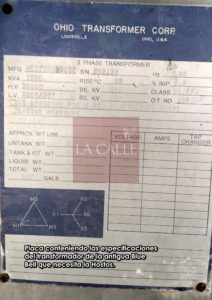 especificaciones del transformador usado