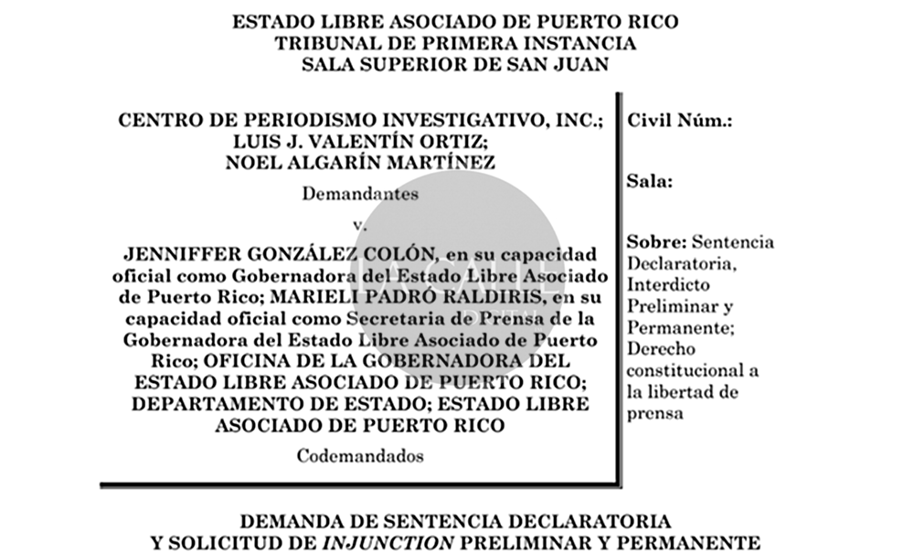 La organización periodística presentó un injunction preliminar y permanente, así como una sentencia declaratoria para impugnar la constitucionalidad de esta actuación contraria a la libertad de prensa, y lograr que los periodistas del CPI puedan acceder a cubrir las conferencias de la gobernadora y sus funcionarios en La Fortaleza sin la credencial que emite el Departamento de Estado y solo con la credencial de prensa del CPI, como siempre ha ocurrido.