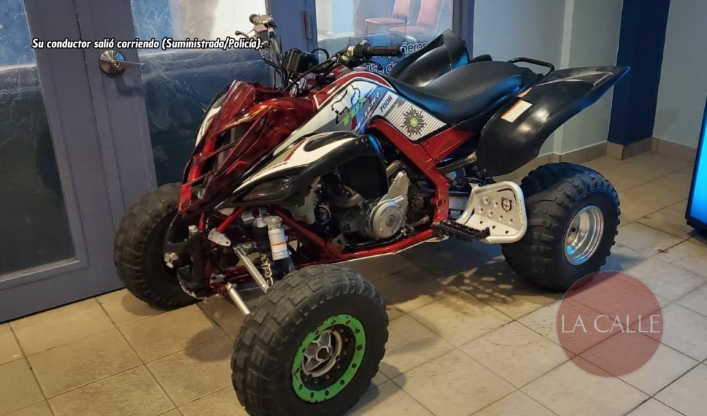 Mientras, en la carretera 348, frente al Colegio San Benito de Mayagüez, los agentes Johiram Rodríguez y Eduardo González ocuparon un “four track”, cuyo conductor huyó a pie. Sin embargo, el personal policíaco tiene la identidad del sujeto, como resultado de una confidencia recibida a través del teléfono 787-343-2020.
