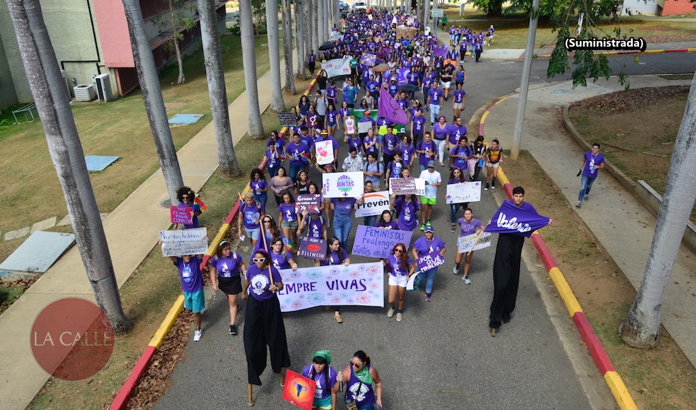 MAYAGÜEZ: Las calles del Recinto Universitario de Mayagüez (RUM) se vistieron el jueves de violeta para reforzar el mensaje de igualdad por género, a propósito de la conmemoración del Día Internacional de la Mujer. El Proyecto Siempre Vivas, la Asociación de Colegiales en Apoyo a Siempre Vivas y el Programa de Prevención de Violencia de Género, todas entidades del recinto mayagüezano de la Universidad de Puerto Rico (UPR), se unieron por quinto año consecutivo para, a través de la Marcha Violeta, continuar educando sobre la importancia de la equidad.
