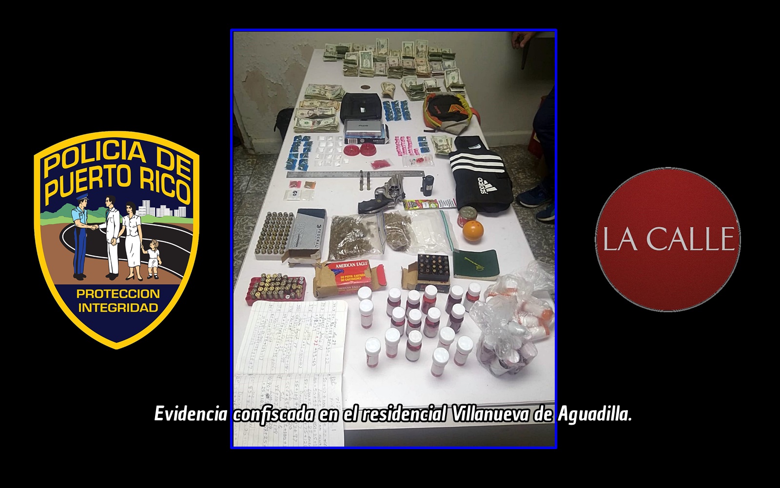 AGUADILLA: Agentes de las divisiones de Drogas e Inteligencia Criminal de la región noroeste diligenciaron una orden de allanamiento en un apartamento del residencial Bernardino Villanueva de Aguadilla, donde confiscaron drogas, un arma, balas y más de $16 mil en efectivo.