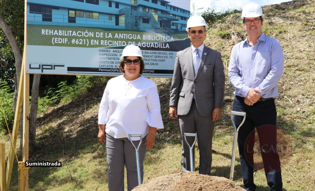 AGUADILLA: Con el propósito de llevar a cabo la rehabilitación de los pisos 1, 2 y 3 del Edificio 621, antigua biblioteca de la Universidad de Puerto Rico (UPR), en Aguadilla, El presidente de UPR, doctor Jorge Haddock, colocó la primera piedra de lo que será el innovador edificio multiusos en el recinto.