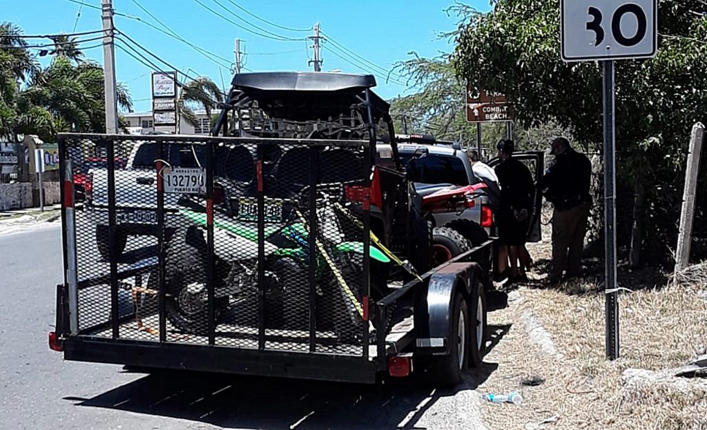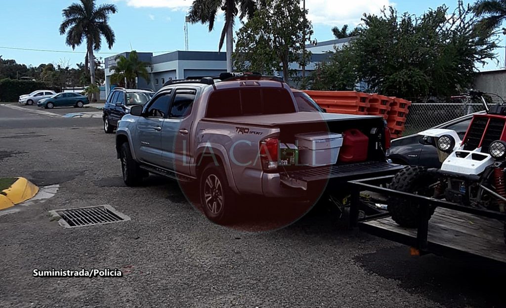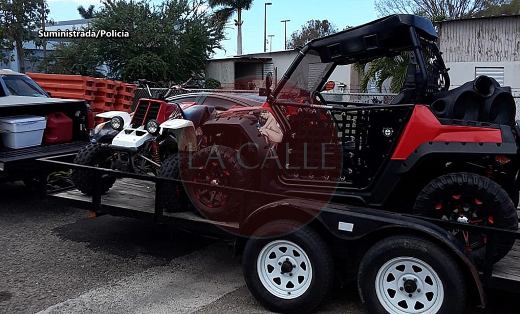 La guagua remolcaba un arrastre que llevaba un vehículo todo terreno Polaris, que tenía una tablilla obtenida de manera ilegal; un “four track” y una motora pequeña, que tampoco estaban registradas en el DTOP, por lo que fueron confiscados.
