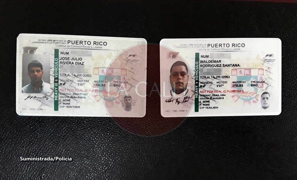 Los detenidos fueron identificados como Waldemar Rodríguez Santana y José Julio Rivera Díaz, que de primera intención fueron intervenidos cuando no usaban los cinturones de seguridad mientras viajaban en una guagua pick up Toyota Tacoma, en la intersección de las carreteras 301 y 3301, en la entrada al sector playero de El Combate en Cabo Rojo.